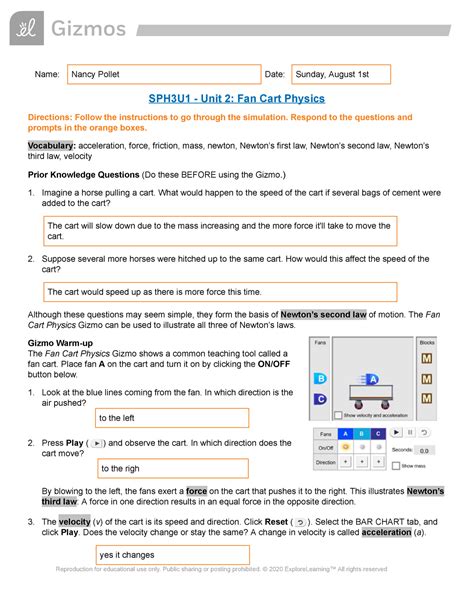 Read Online Fan Cart Physics Gizmo Answers Key Kindle Editon