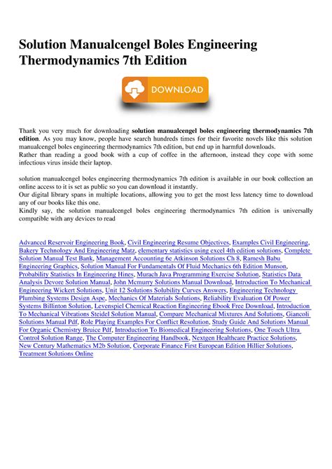 Solution Manualcengel Boles Engineering Thermodynamics 7th Edition PDF By Click Button. Solution Manualcengel Boles Engineering Thermodynamics 7th Edition it’s easy to recommend a new book category such as Novel, journal, comic, magazin, ect. You see it and you just know that the designer is also an author and understands the challenges involved with having a good book. You can easy klick for detailing book and you can read it online, even you can download it